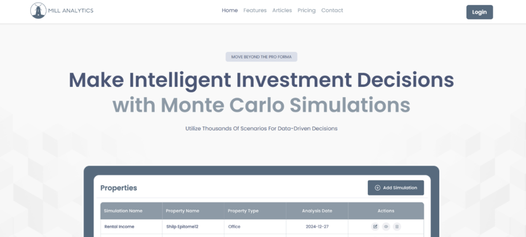 MillAnalytics is a commercial real estate data and analytics platform designed to help investors, brokers, and acquisition teams make faster, data‑driven decisions using real‑time market insights.