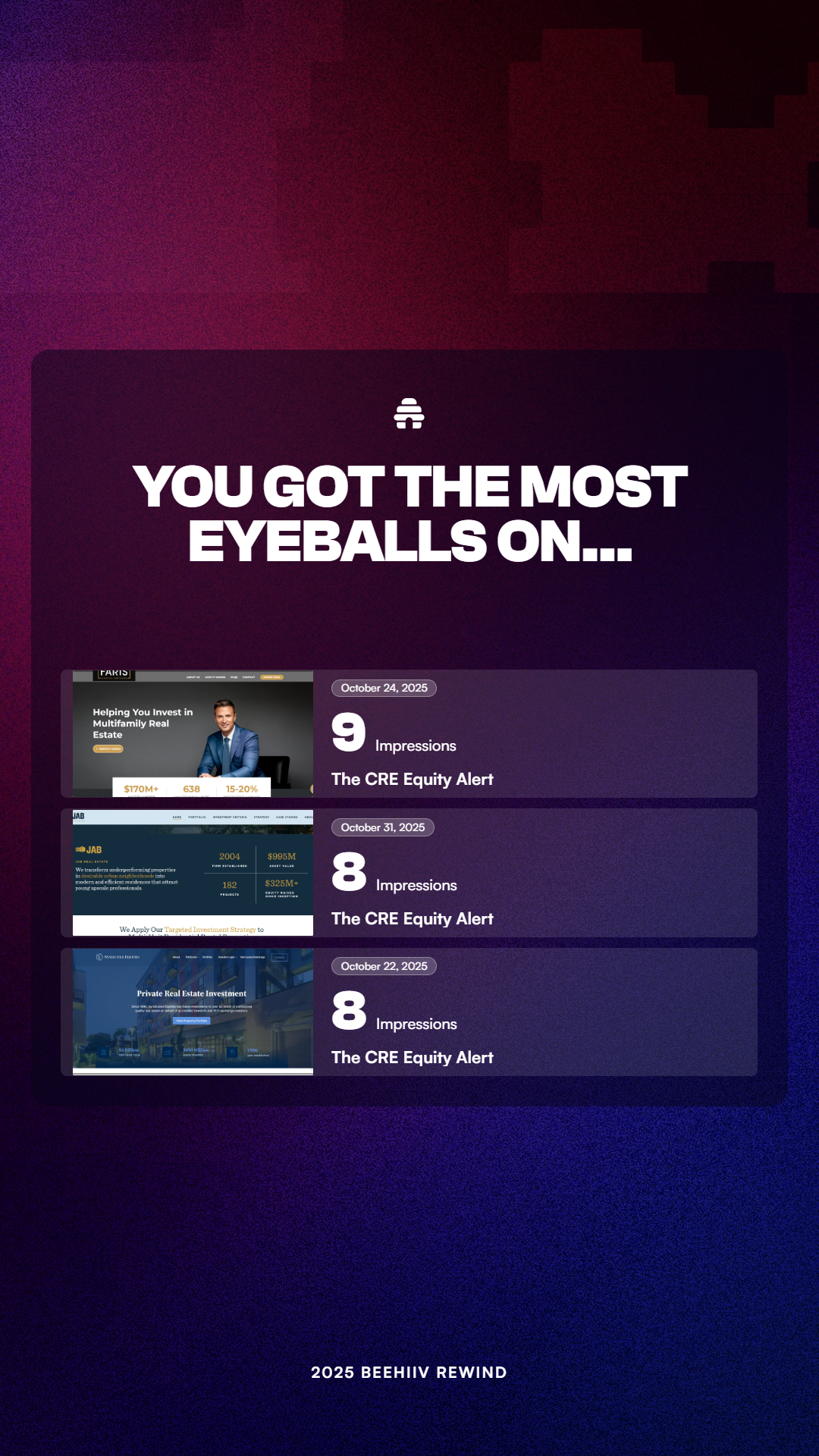 Supported the growth of the MillAnalytics audience by maintaining a consistent daily newsletter that helped attract subscribers interested in CRE insights
